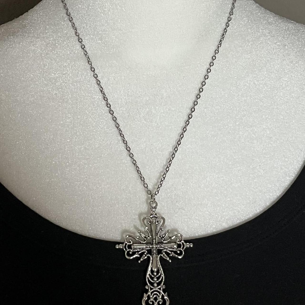 goth emo cross silver chain necklace!!