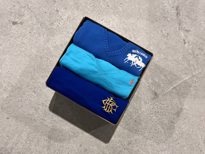 A great selection of Ralph Lauren sweaters. The sweaters may be unicolor, striped or with details. This bundle comes in different colors, styles and sizes.