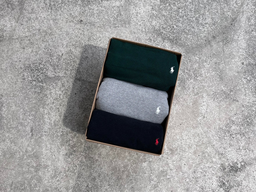 This bundle contains the cozy ralph lauren waffle knit long sleeved t-shirts. They come in different colors and sizes.
